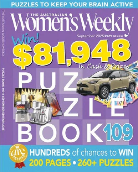 Australian Women's Weekly Puzzle Book is a monthly puzzle book with a variety of puzzles. There are 200 pages with 260+ puzzles, plus hundreds of chances to win. Whether you want a findaword, crosswords, sudoku, logic problems or fill-ins, there is something for everyone in this monthly puzzle book.