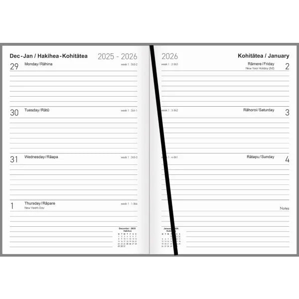 Week to view, full day Sat/Sun. Ribbon marker. Adhesive bound, firm, printed and laminated cover. A5 Size. Assorted Designs - availability may vary
